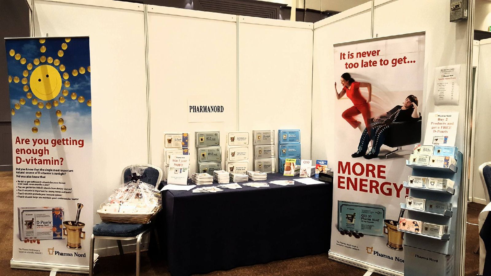 Q10 100mg Pharma Nord was the most popular product on our stand. People visiting the stand were interested in finding out how they could naturally increase their energy. Q10 Pharma Nord provides our cells with more Q10 which helps break down food and turn it into energy.
